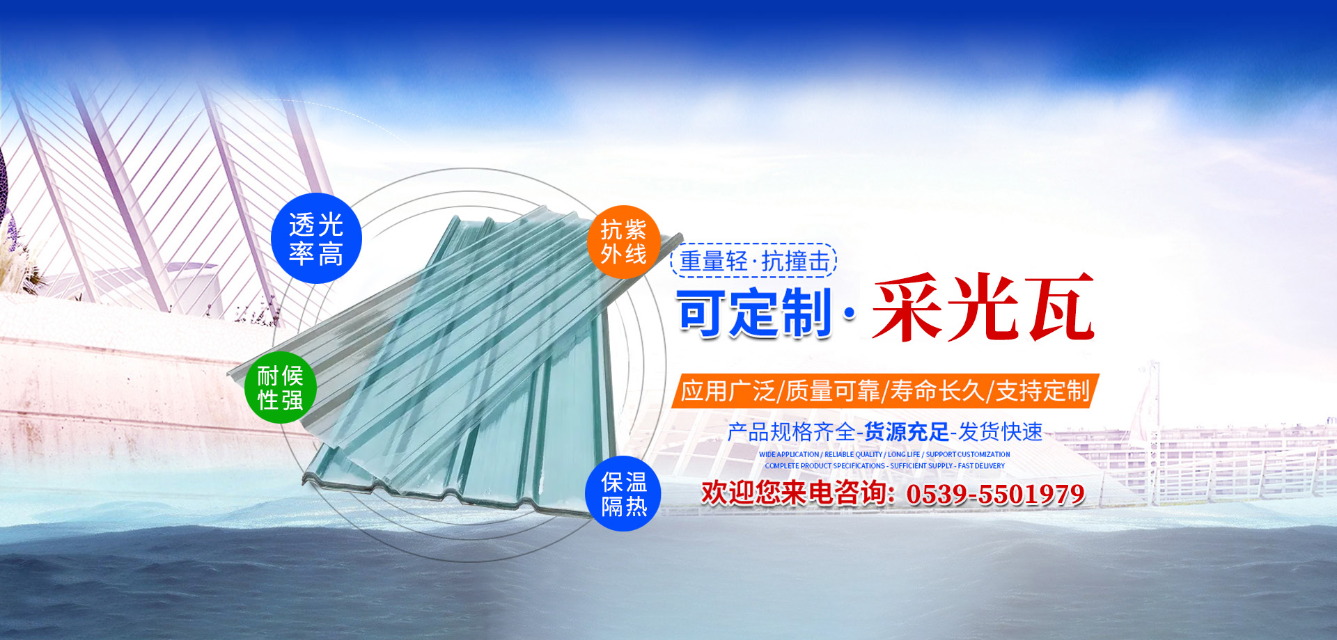 我廠常年生產采光瓦、覆膜隔熱瓦、阻燃隔熱瓦等產品。產品廣泛適應于大型建筑,現(xiàn)代輕鋼結構彩色壓型板,溫室大棚,體育場館,水產養(yǎng)殖等場所。